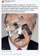 If Apple’s problem were actually with “hate speech,” “Nazi symbols,” and “offensive uses of derogatory terms regarding race, religion and sexual orientation” (quoted from Apple’s letter to Parler when the App Store pulled the app) they’d have banned Twitter which still has all of these posts online: